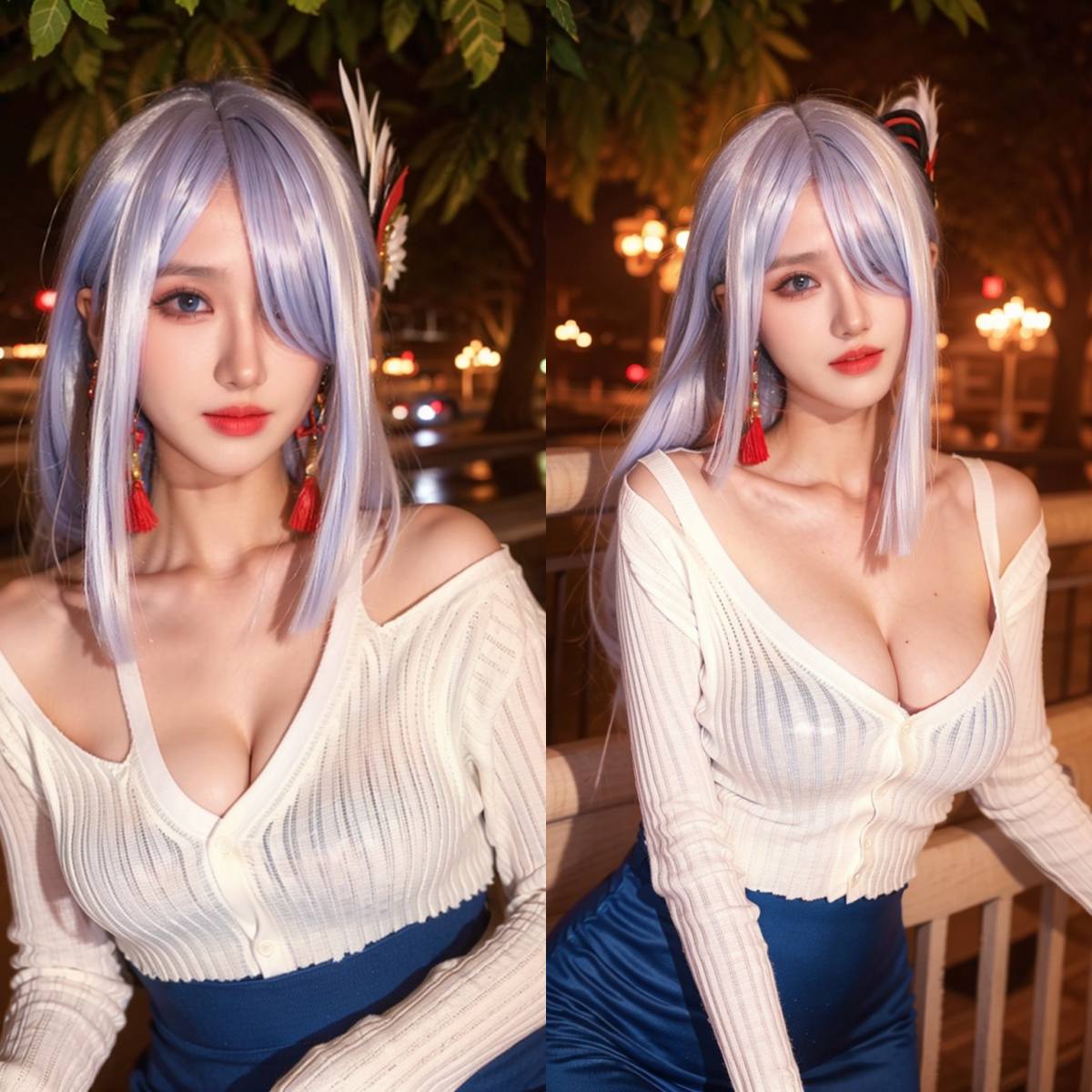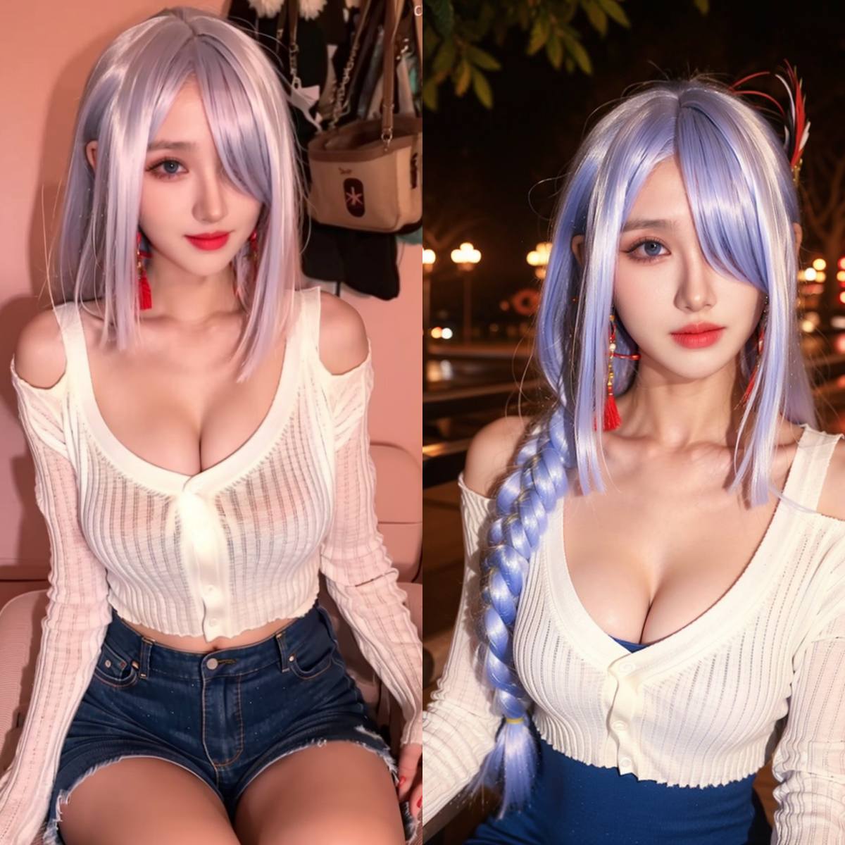 【AI绘画】虚拟网红少女露肩毛衣+49P