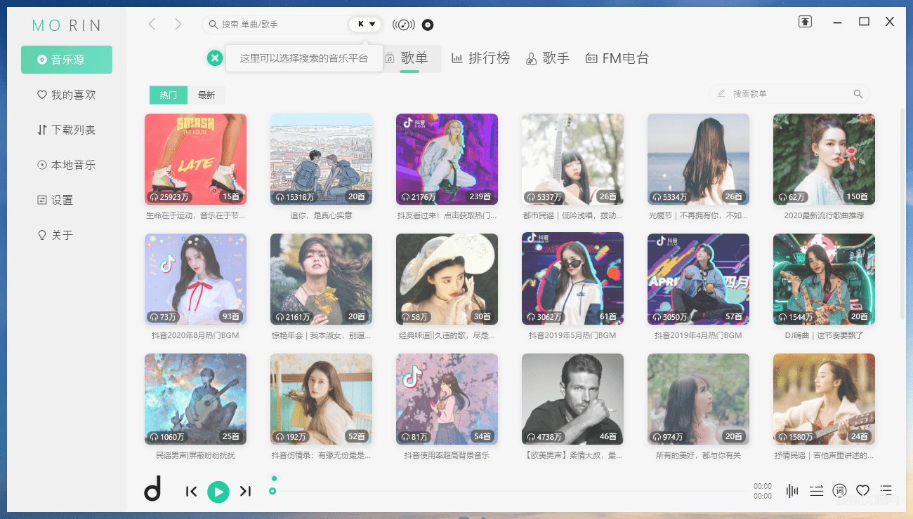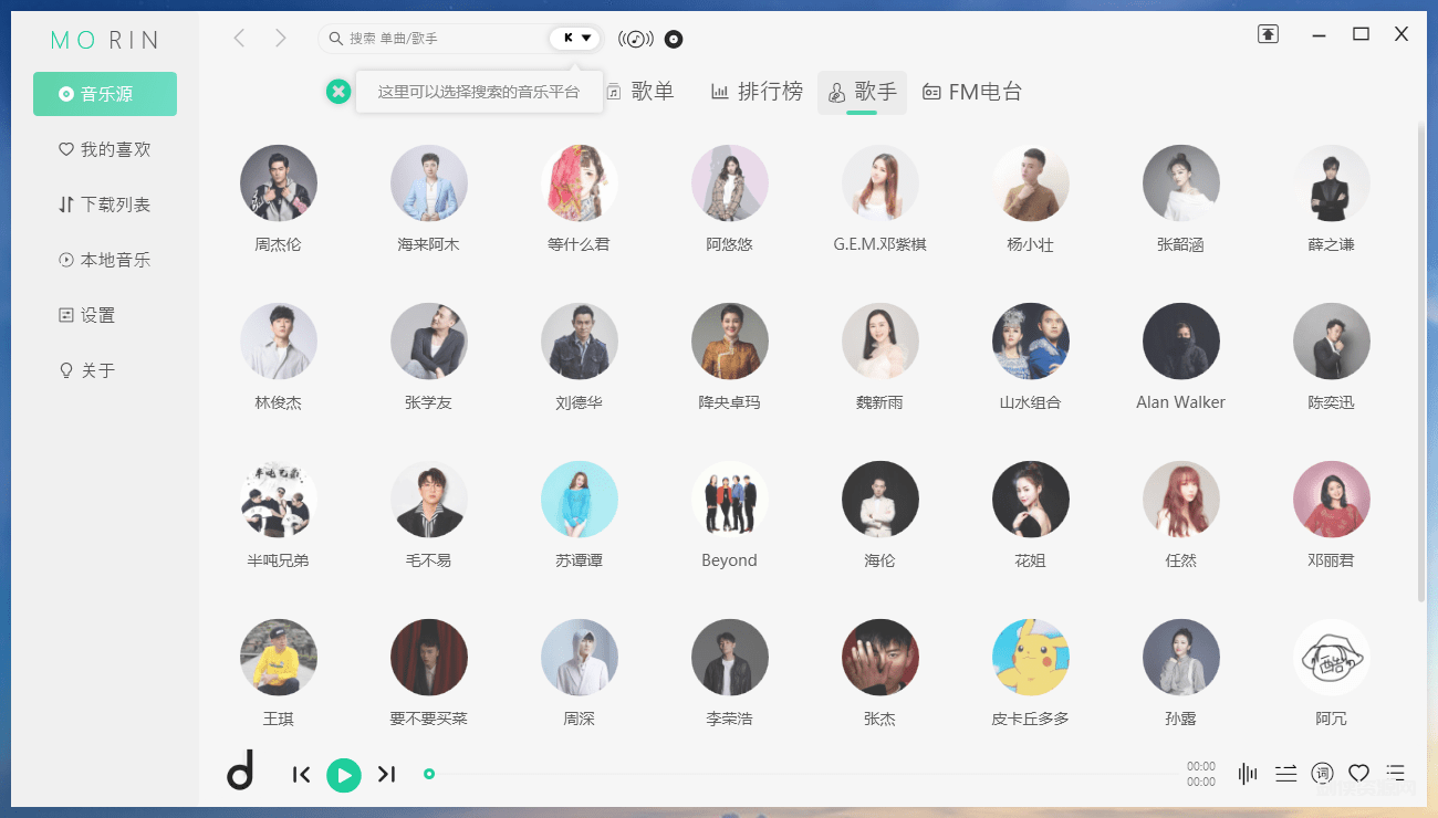 PC】魔音Morin v2.7.5.0解锁付费歌曲无损音乐版.魔音Morin,免费小巧的付费歌曲无损音乐播放器,可以实现免费在线试听及下载付费歌曲、版权音乐、无损音质歌曲。播放器UI简洁,挖掘酷我音乐展示,聚合四大音乐平台搜索接口,智能解析音乐源,也可以自选搜索接口。支持同时下载音乐同时下载歌词文件、专辑图片,支持电脑听歌识曲,播放MV,歌词页显示。